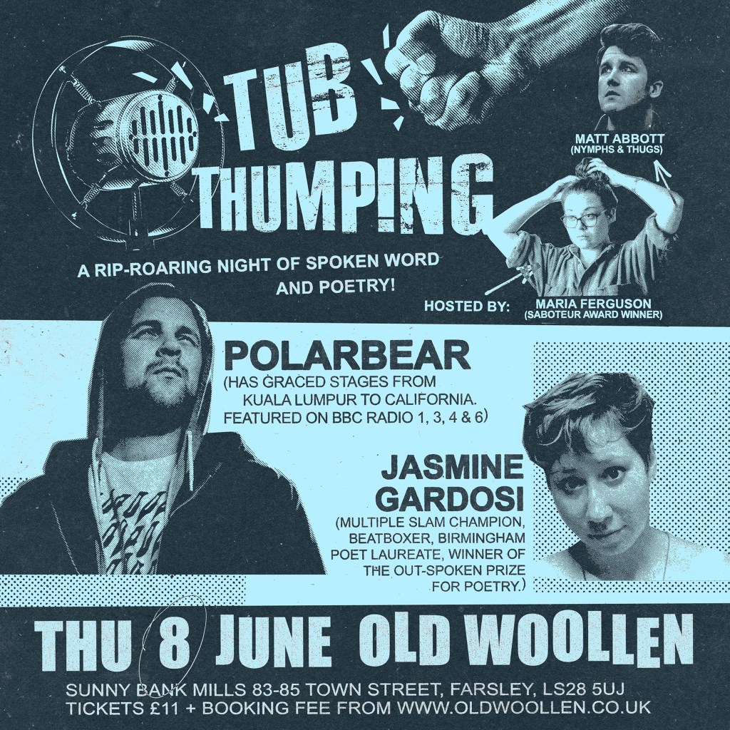 we suffered a bit of a setback with our ‘Tubthumping’ night because The Constitutional tragically closed its doors for the final time at the turn of the year. however, we’re now at the larger and snazzier Old Woollen in Farsley! come and experience what it’ll be like in there as we welcome Steven ‘Polarbear’ Camden and Jasmine Gardosi on Thursday 8 June.