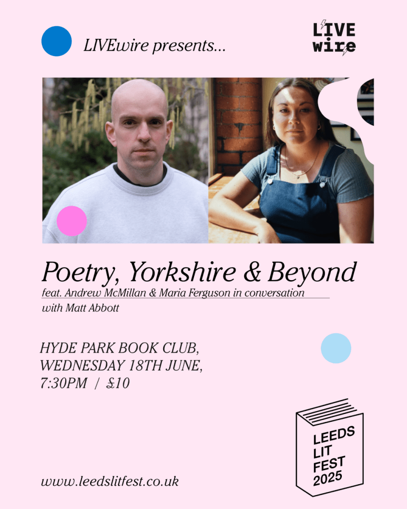 I’m excited to be in conversation with two of my favourite writers as part of a special Leeds Lit Fest event on Wednesday 18 June. Join me at Hyde Park Book Club alongside Andrew McMillan and Maria Ferguson – tickets are on sale here for £10!